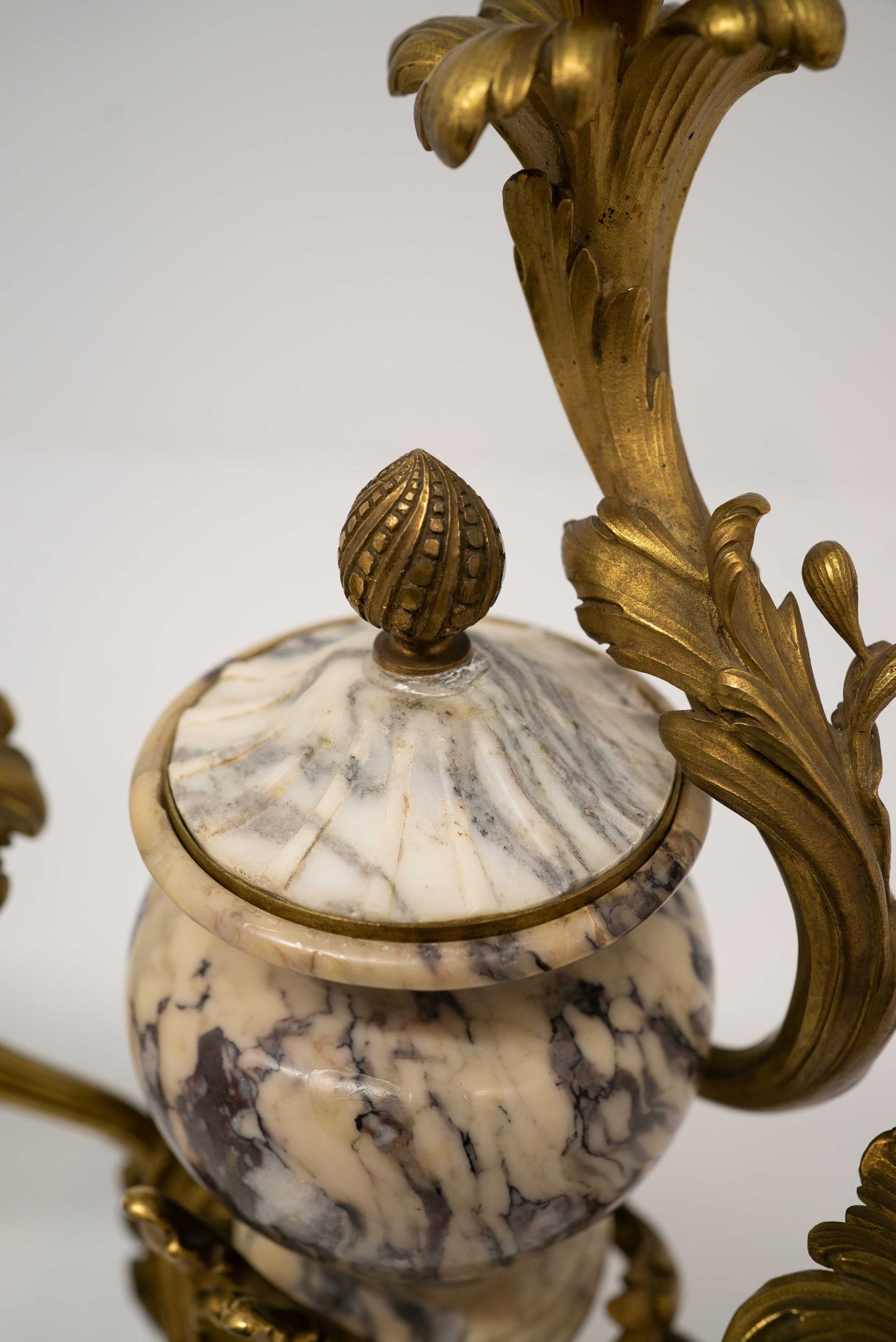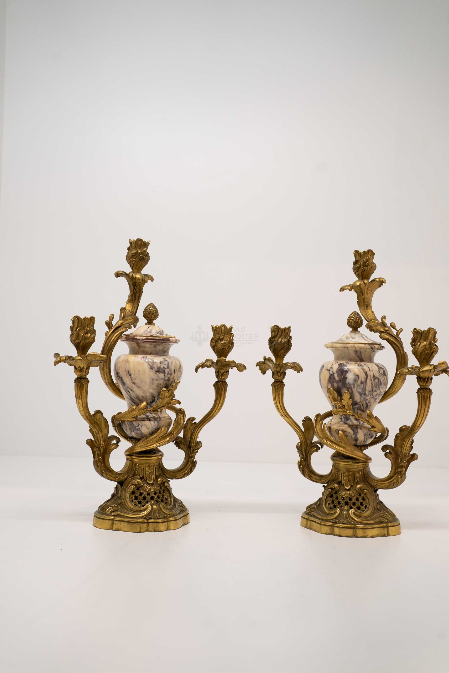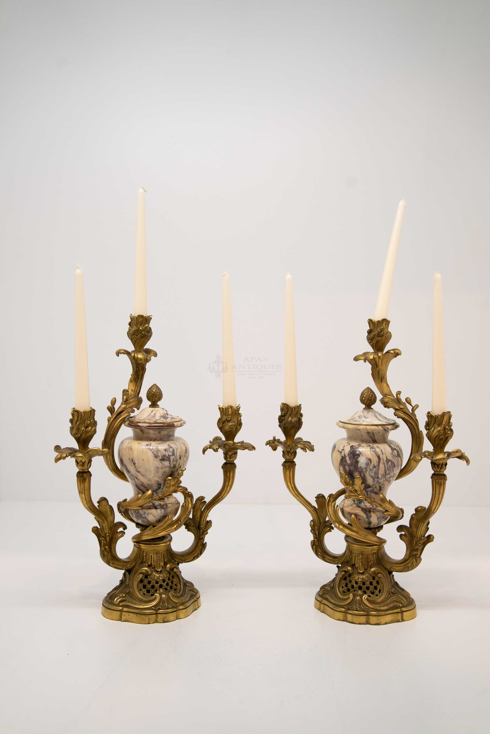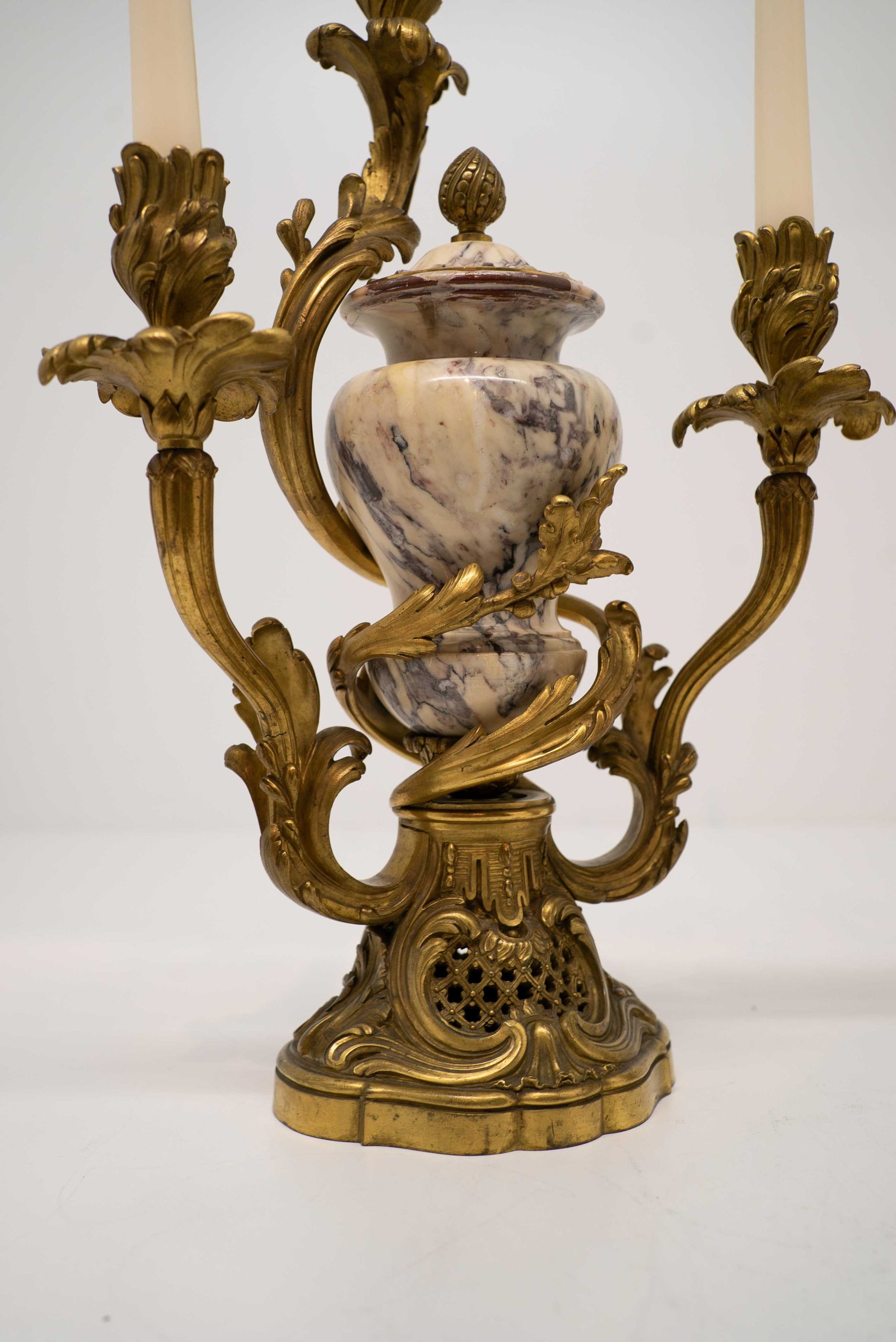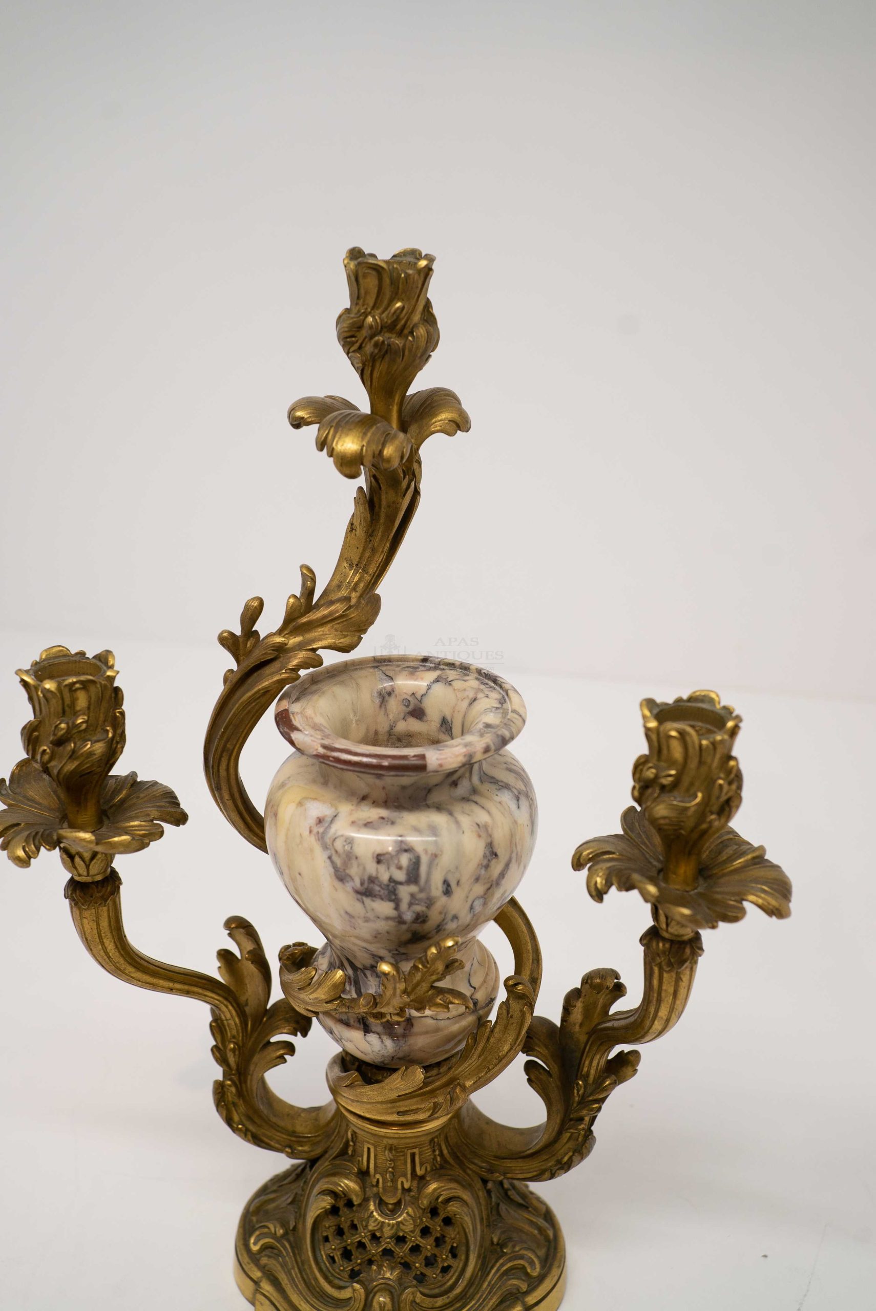 Pair of French Napoleon III style bronze and marble candelbra .Circa 19th Century