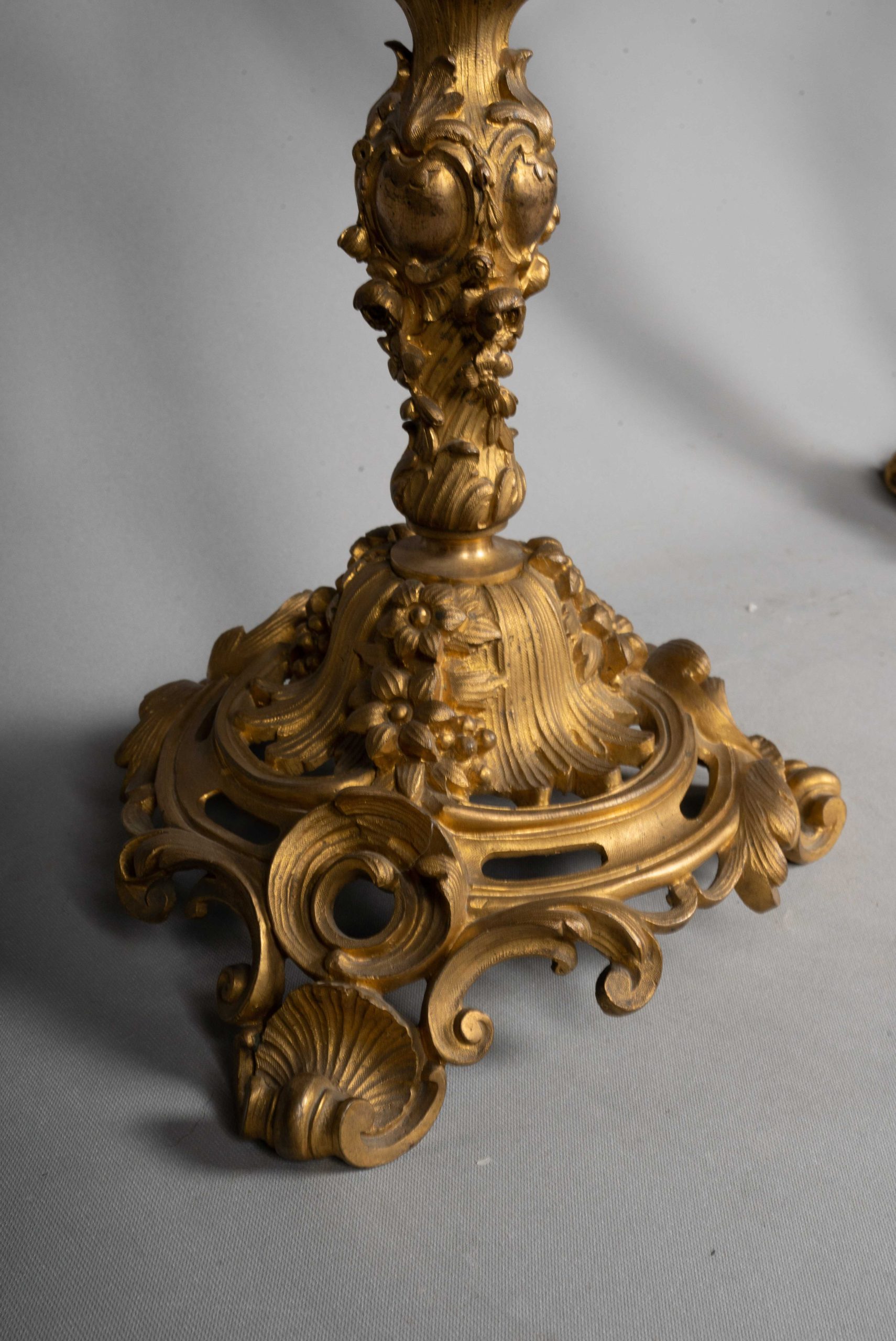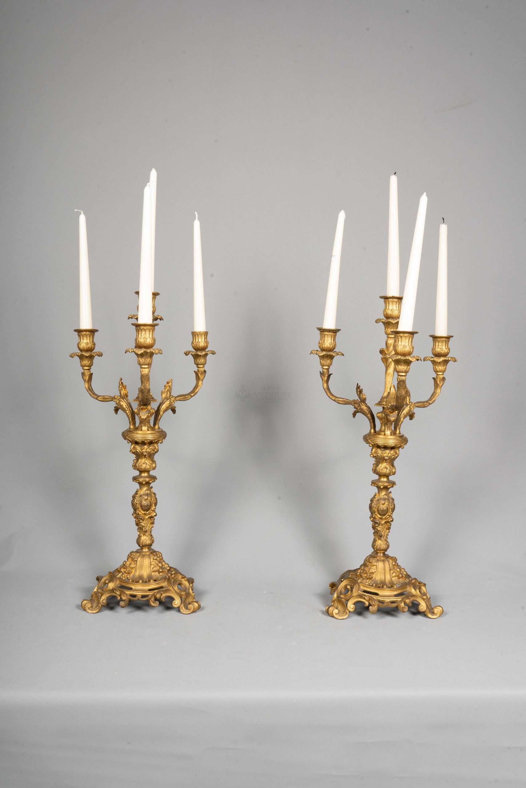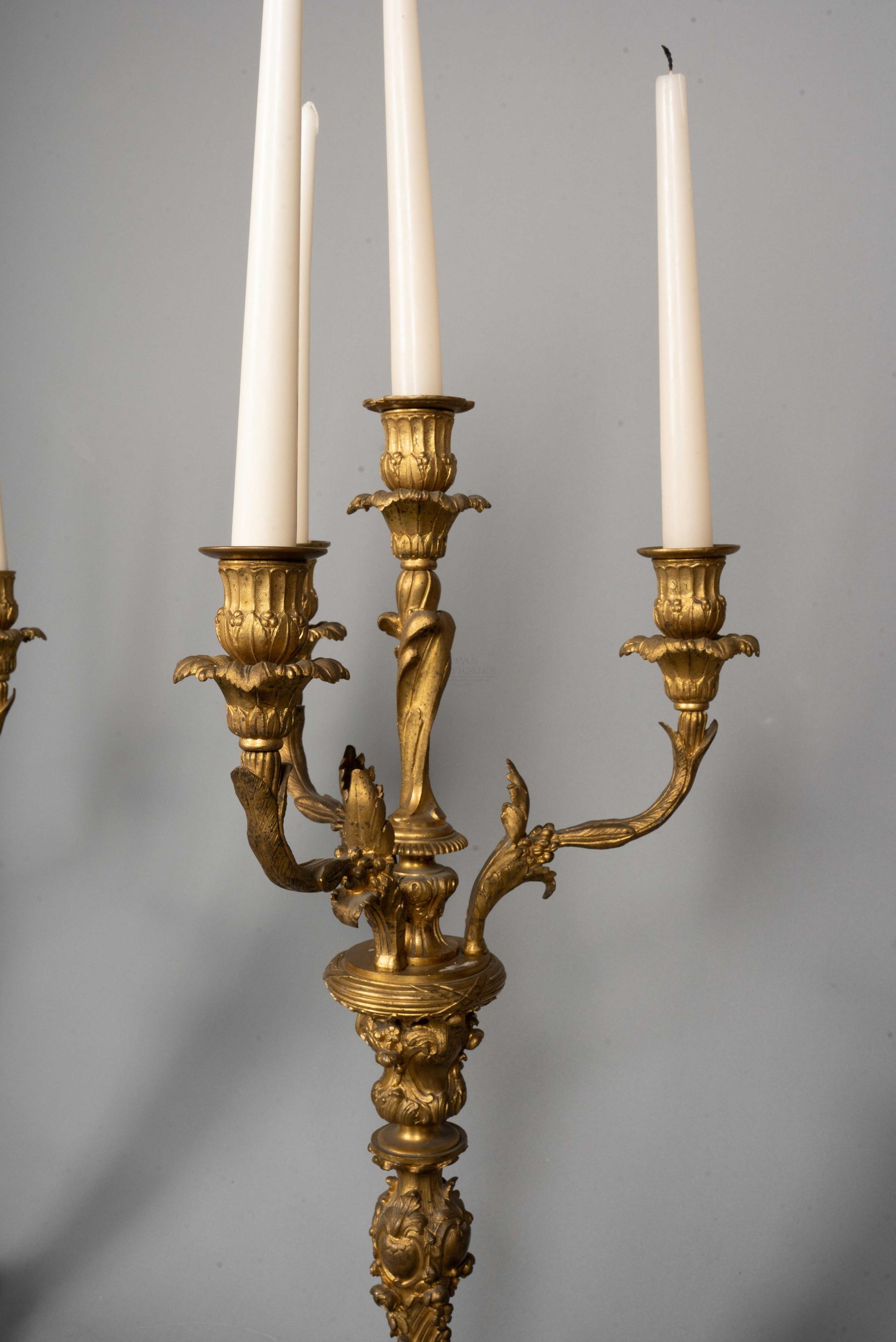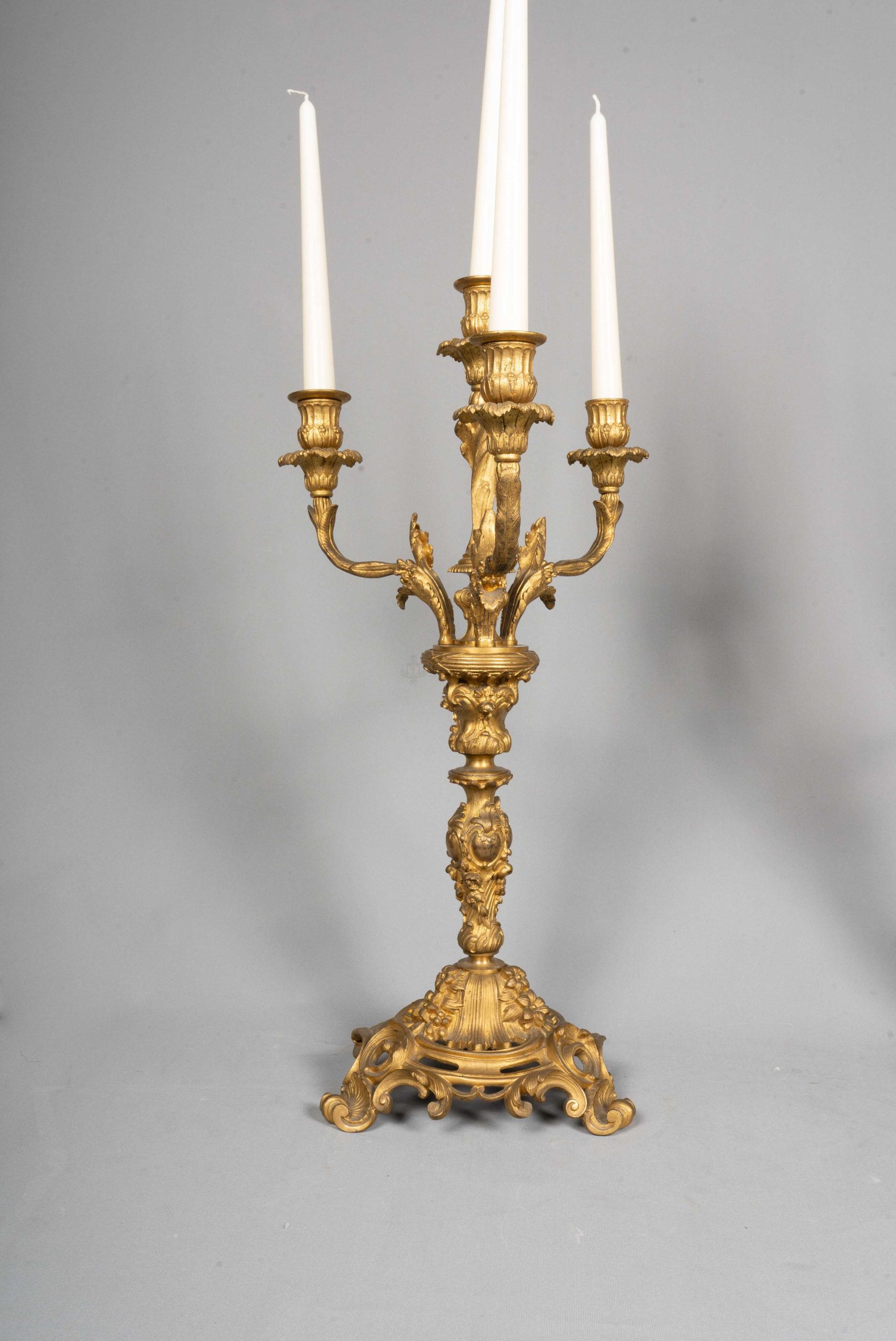 A pair of French 19th century, bronze Rococco Style/ Floral four-light candelabra..