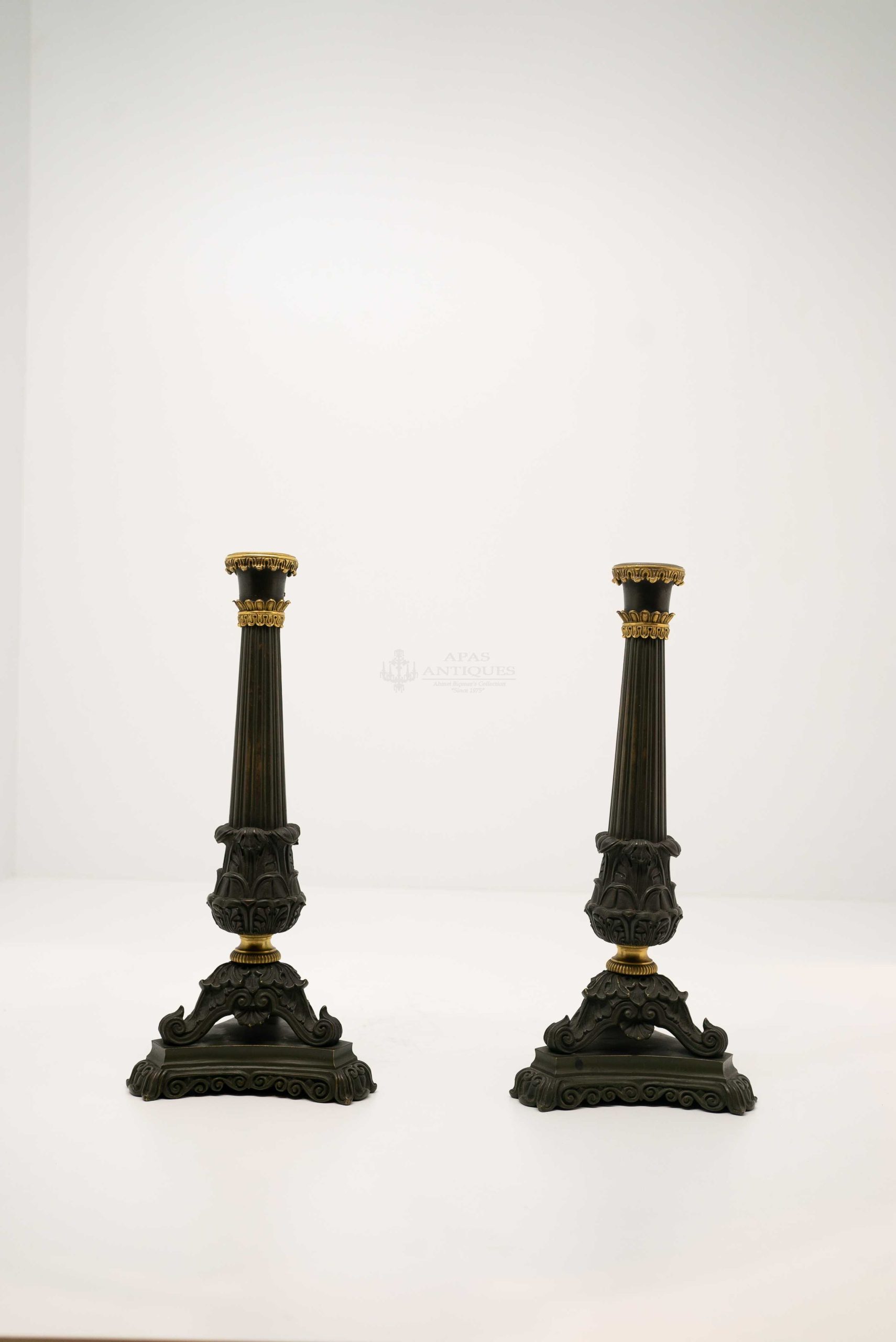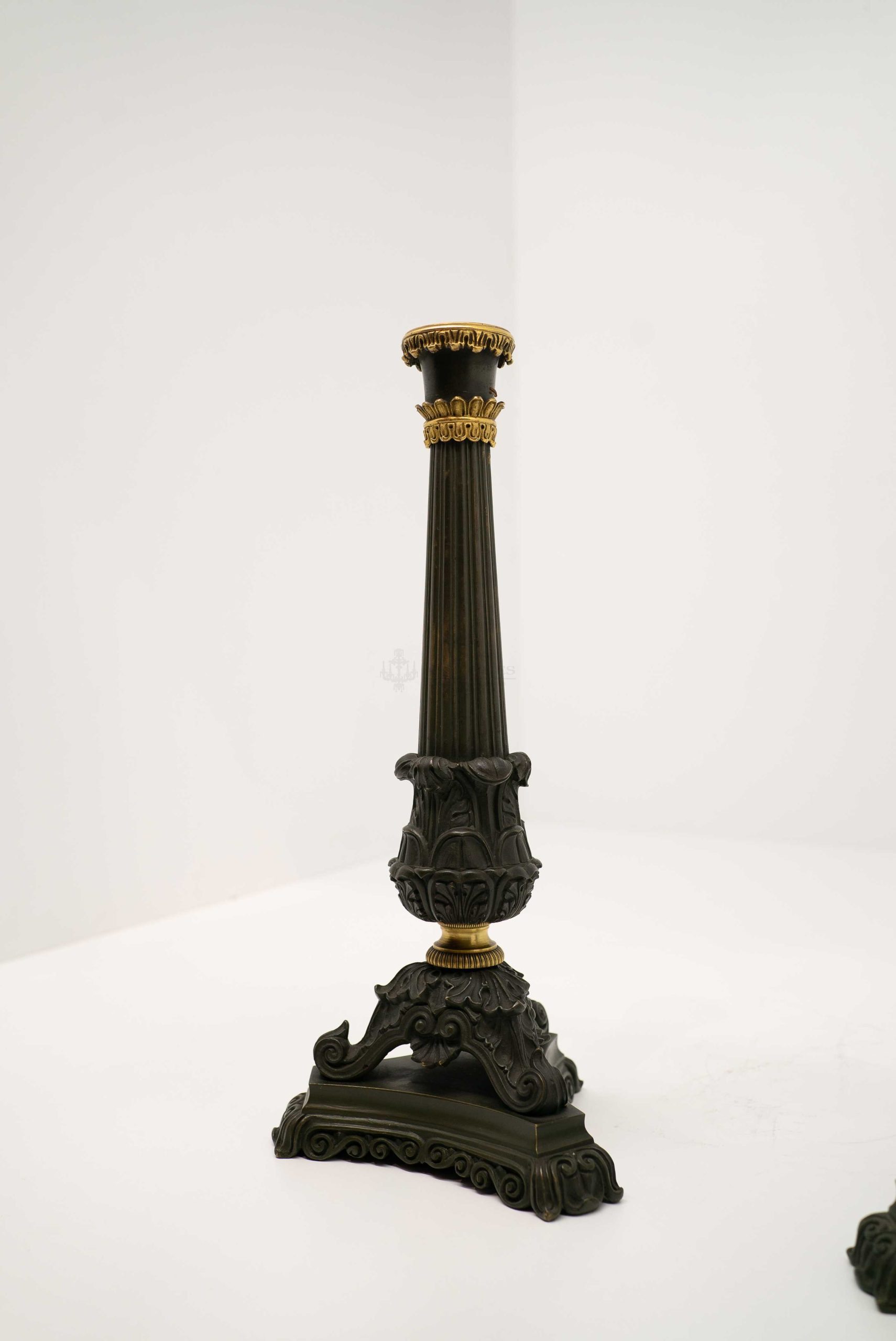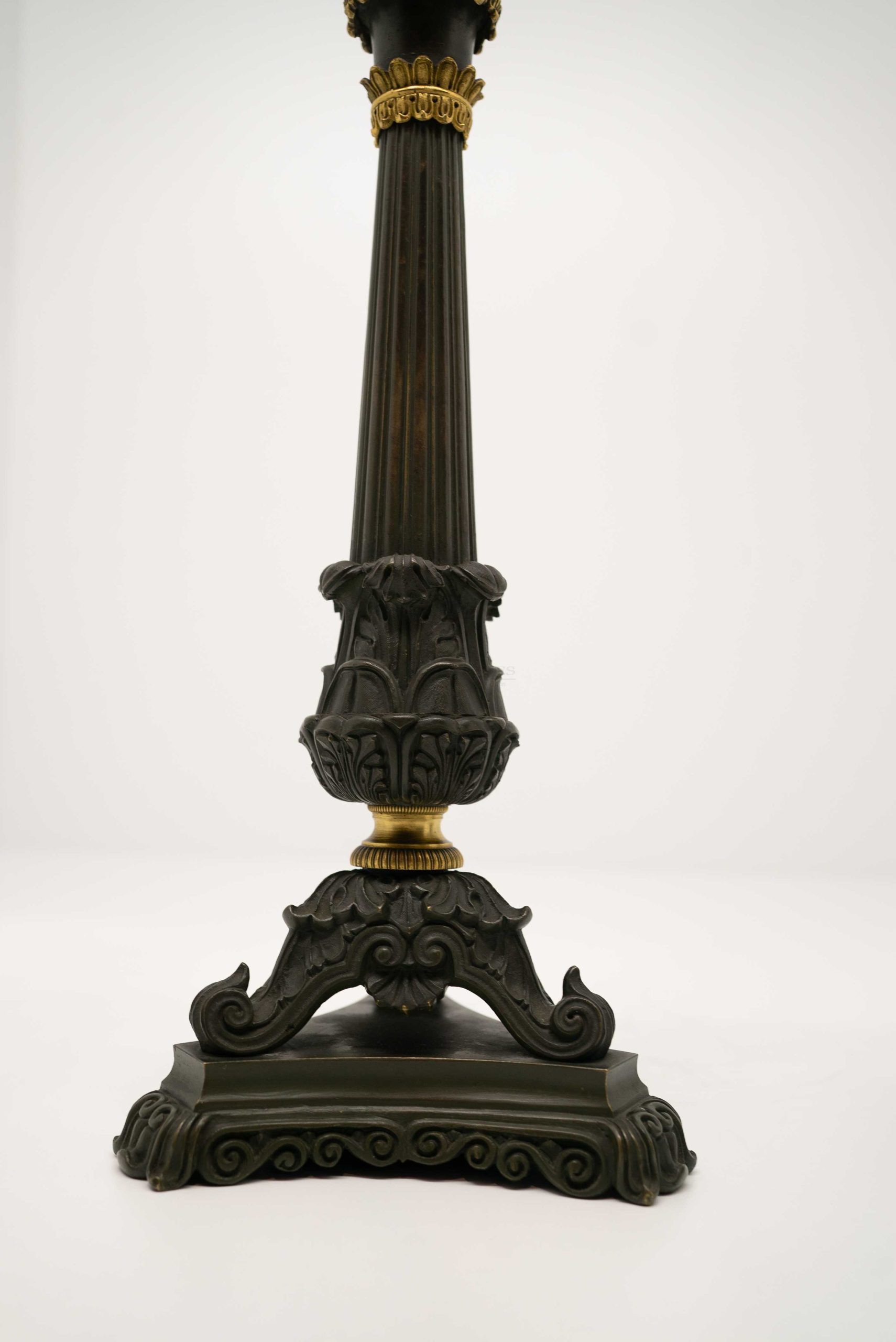 A pair Empire style gilt and patinated -metal oil lamp / candelabras .19th century /France.
